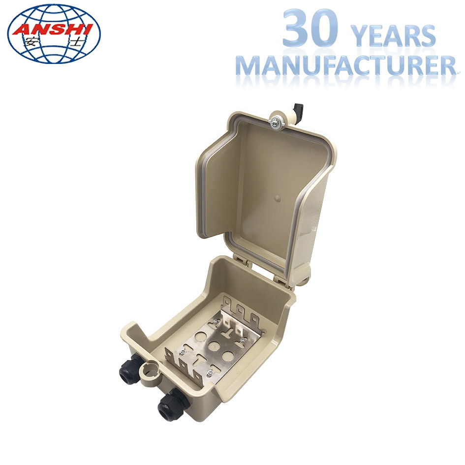 এএস-ডিবি সিরিজ আউটডোর এক্সটার্নাল ডিস্ট্রিবিউশন পয়েন্ট (টেলিফোন জংশন বক্স আউটডোর) 10, 20, 30, 50 এবং 100 জোড়া ইনসুলেশন ডিসপ্লেসমেন্ট কন্টাক্ট (আইডিসি) টাইপ কনফিগারেশন বৈশিষ্ট্য।বিল্ডিংয়ের অভ্যন্তরীণ তারের সমাপ্তির জন্য ডিজাইন করা, এই বিতরণ বাক্সগুলি বহুমুখী ইনস্টলেশন বিকল্পগুলি সরবরাহ করে।
